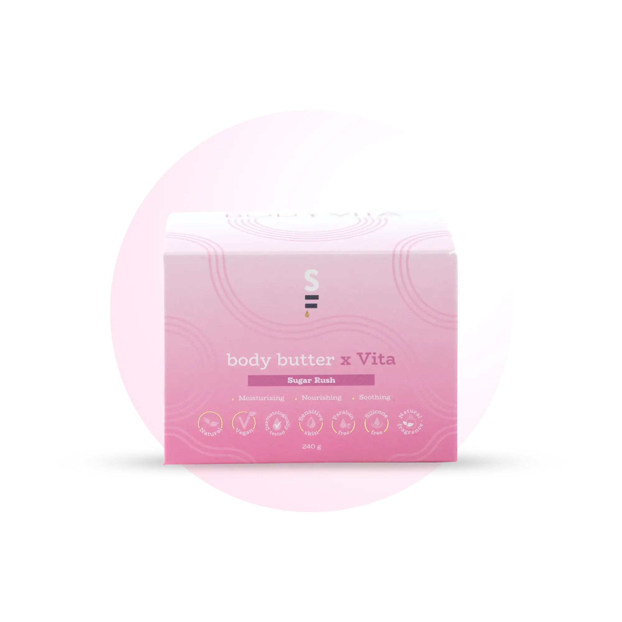 Body Butter Sugar Rush × Vita je maslo za telo, ustvarjeno za tiste, ki želijo, da koža zasije tako, kot se počutijo, samozavestno, mehko in sijoče.